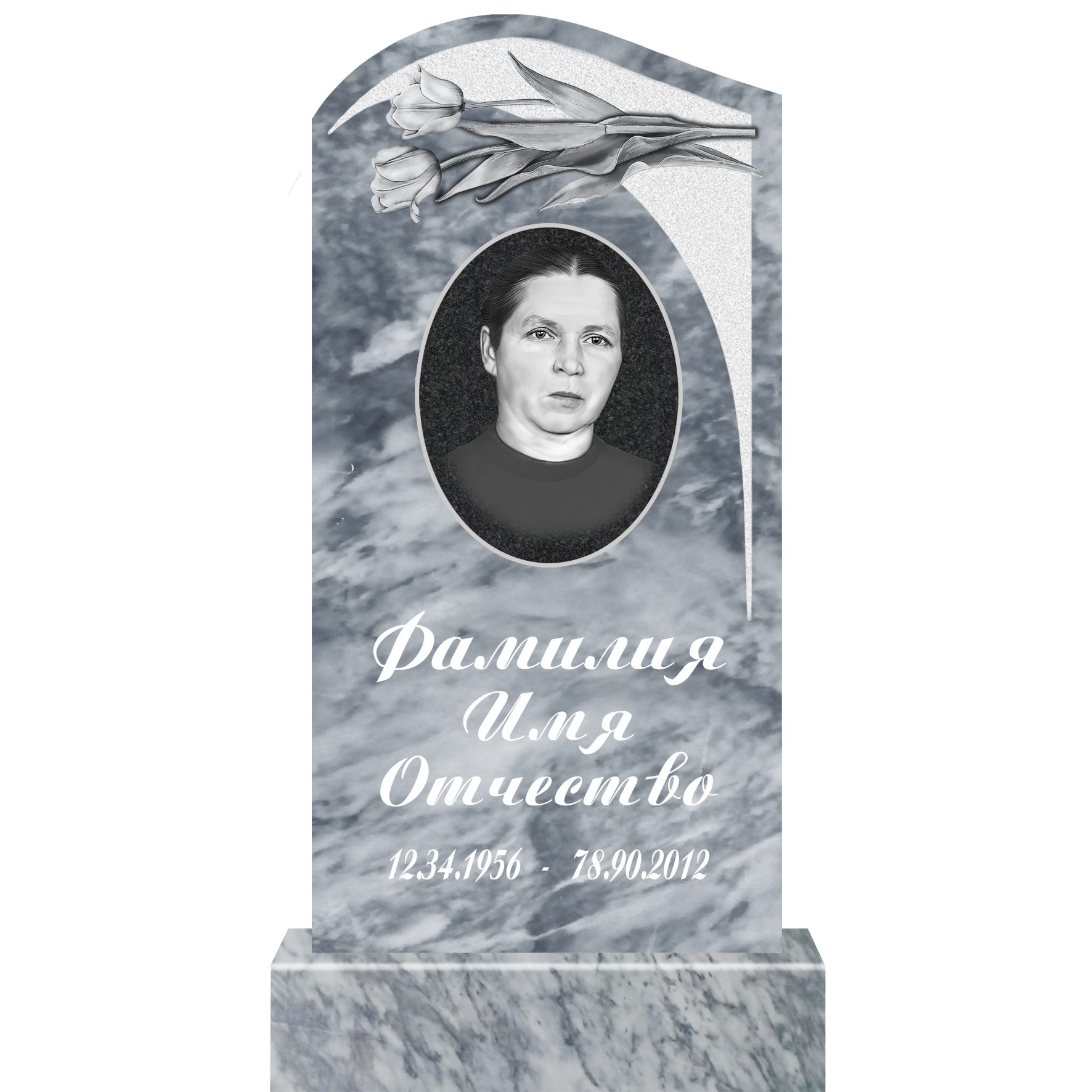 Данный комплект включает в себя памятник из мрамора с полным оформлением.