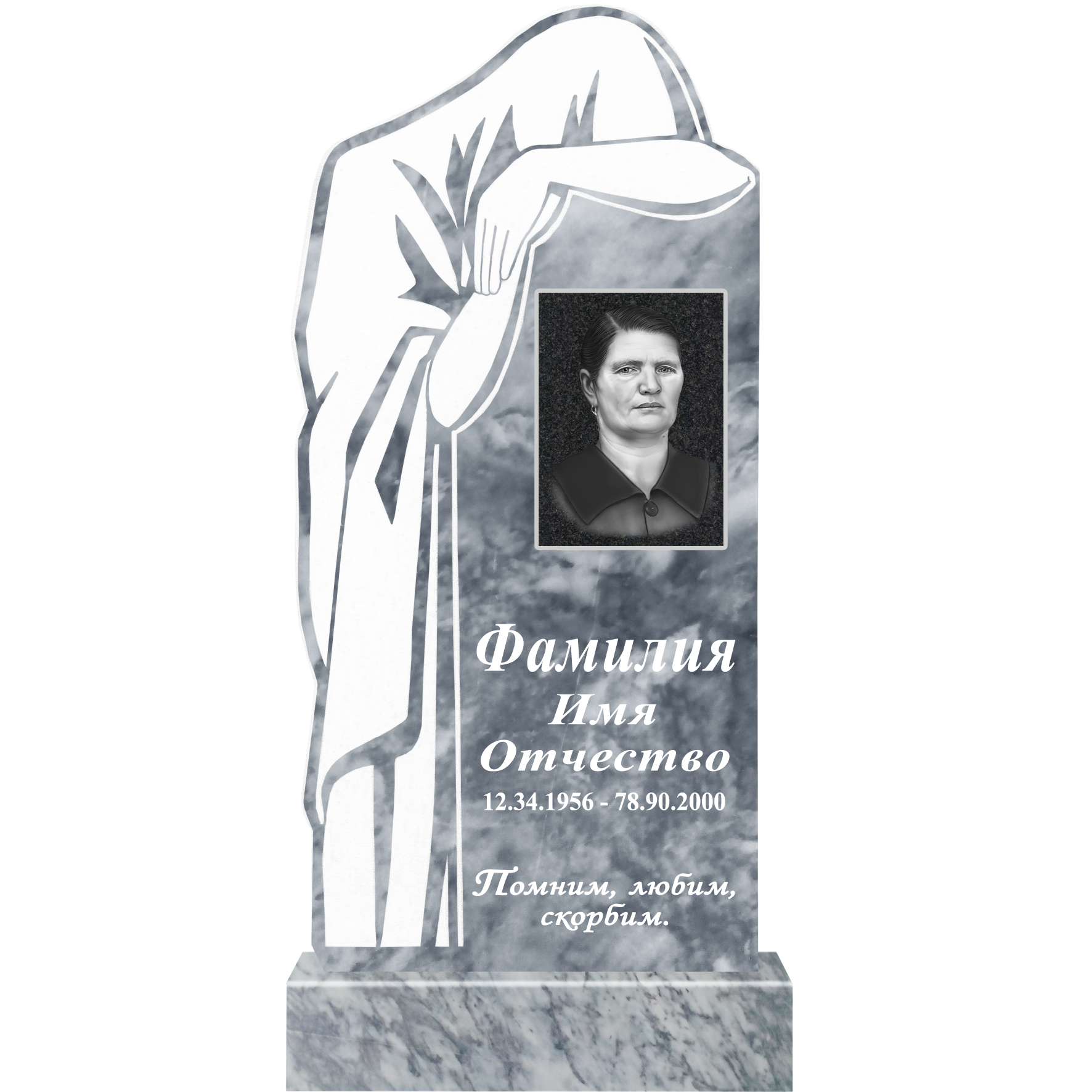 Данный комплект включает в себя памятник из мрамора с полным оформлением.