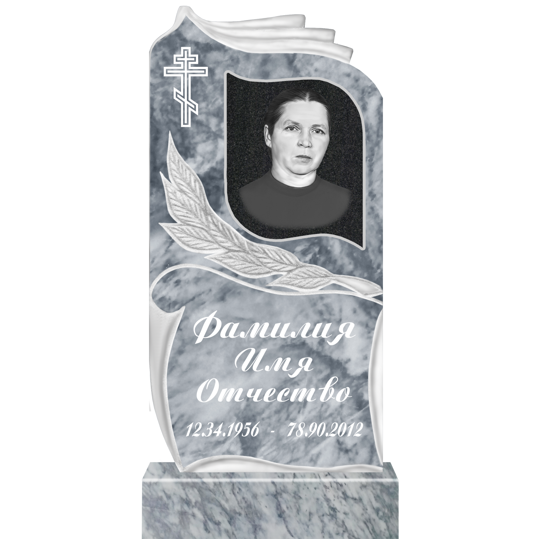 Данный комплект включает в себя памятник из мрамора с полным оформлением.