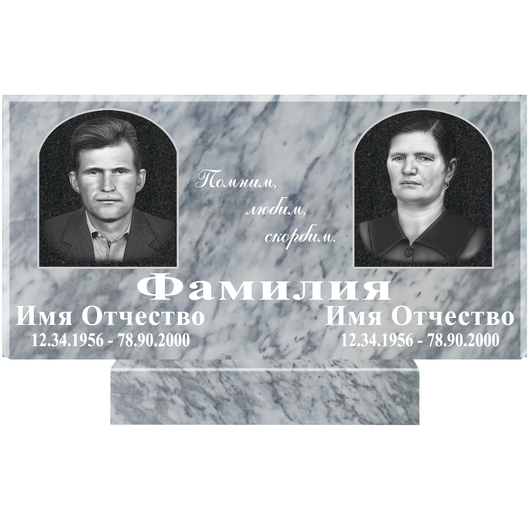 Данный комплект включает в себя памятник из мрамора с полным оформлением.