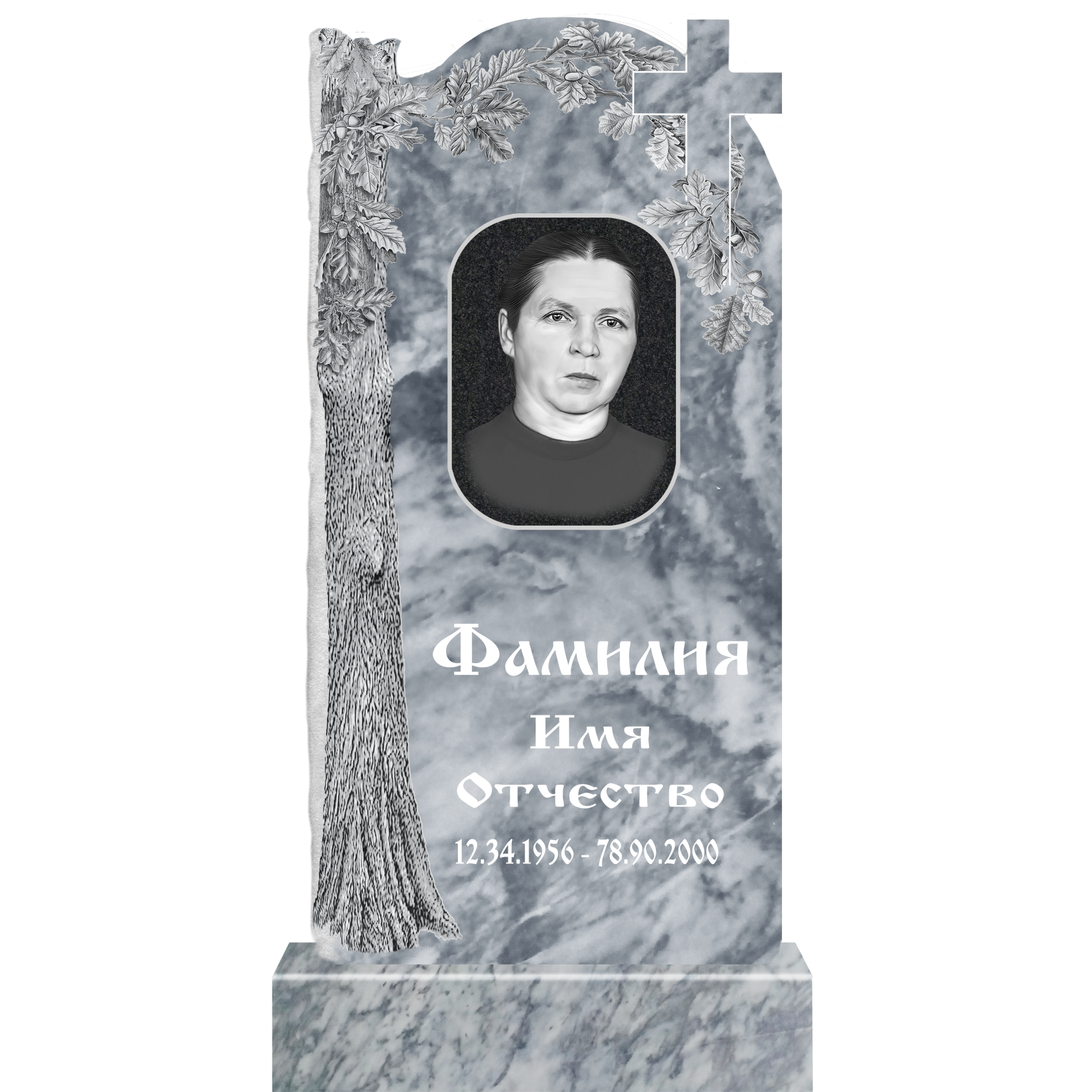 Данный комплект включает в себя памятник из мрамора с полным оформлением.