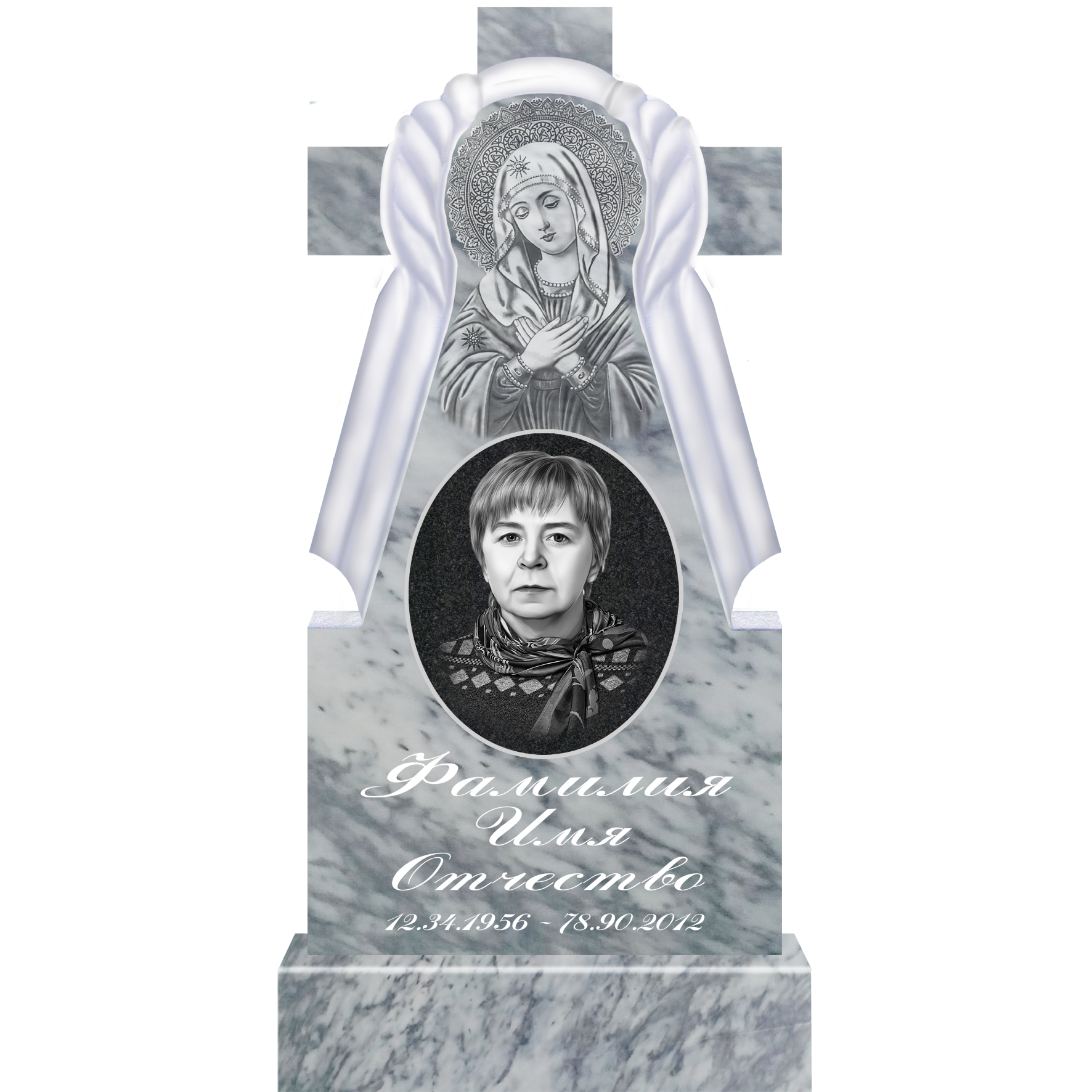 Данный комплект включает в себя памятник из мрамора с полным оформлением.