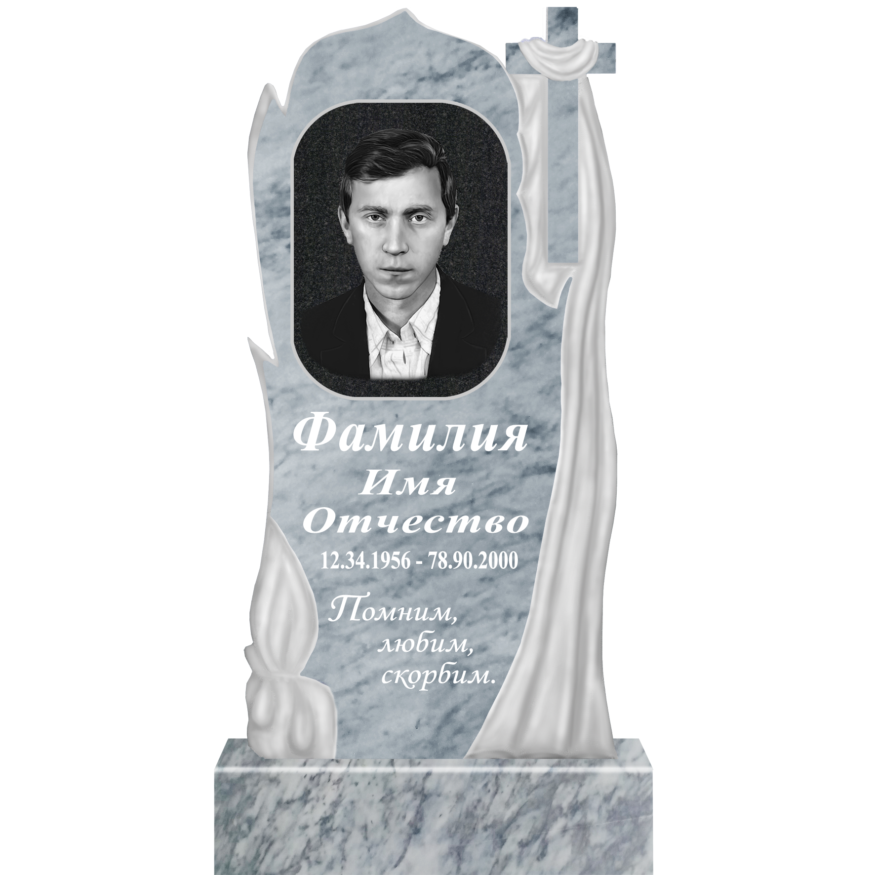 Данный комплект включает в себя памятник из мрамора с полным оформлением.