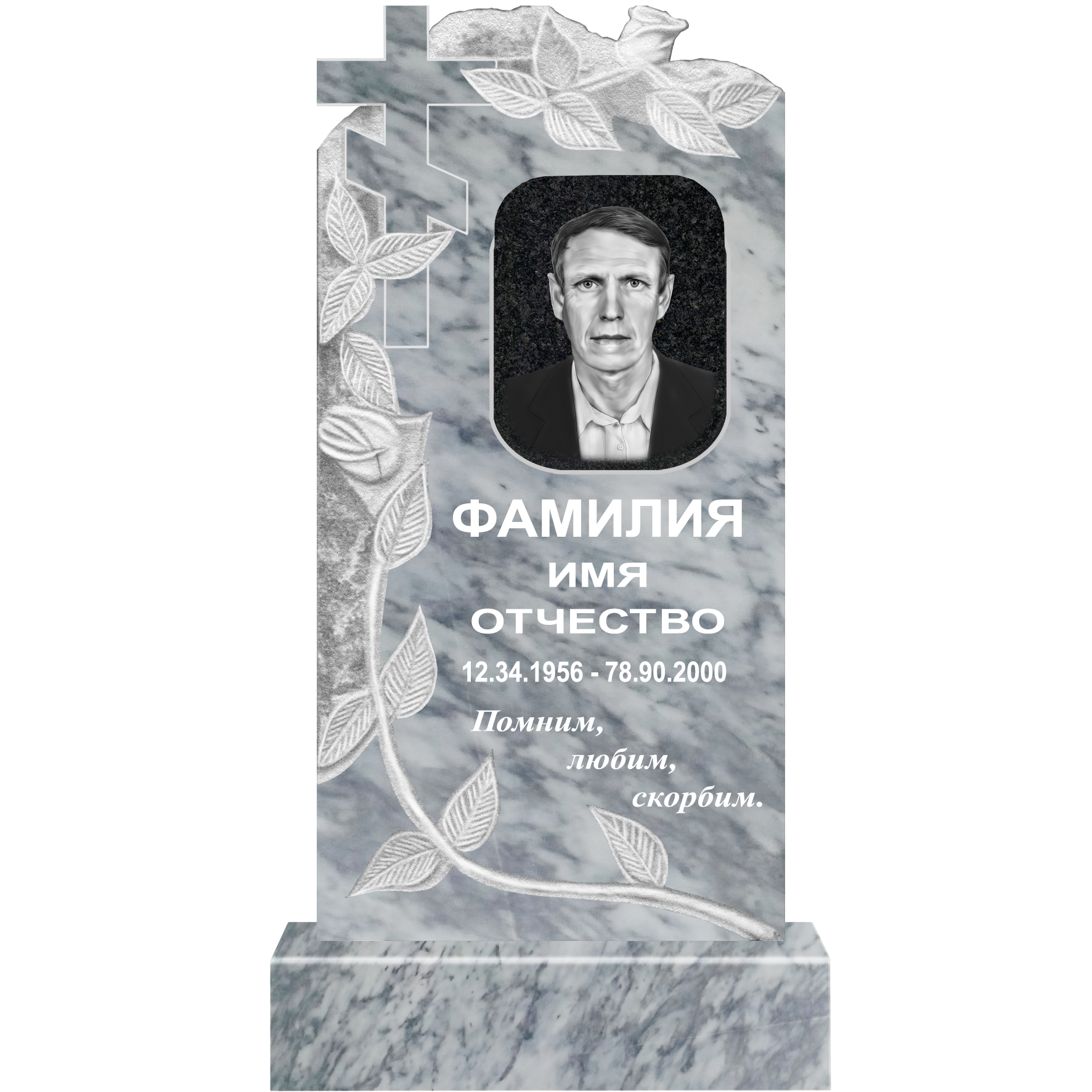 Данный комплект включает в себя памятник из мрамора с полным оформлением.