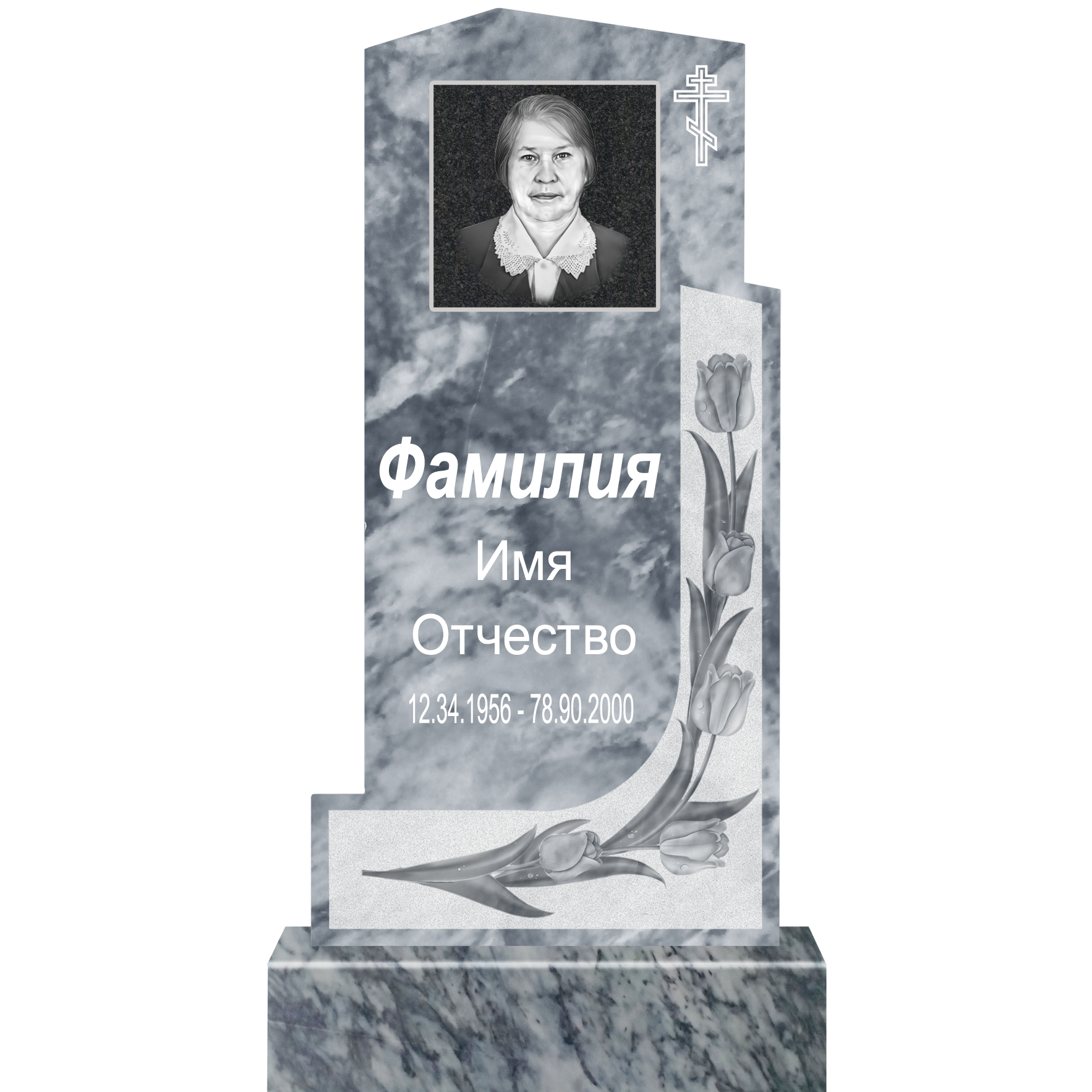 Данный комплект включает в себя памятник из мрамора с полным оформлением.