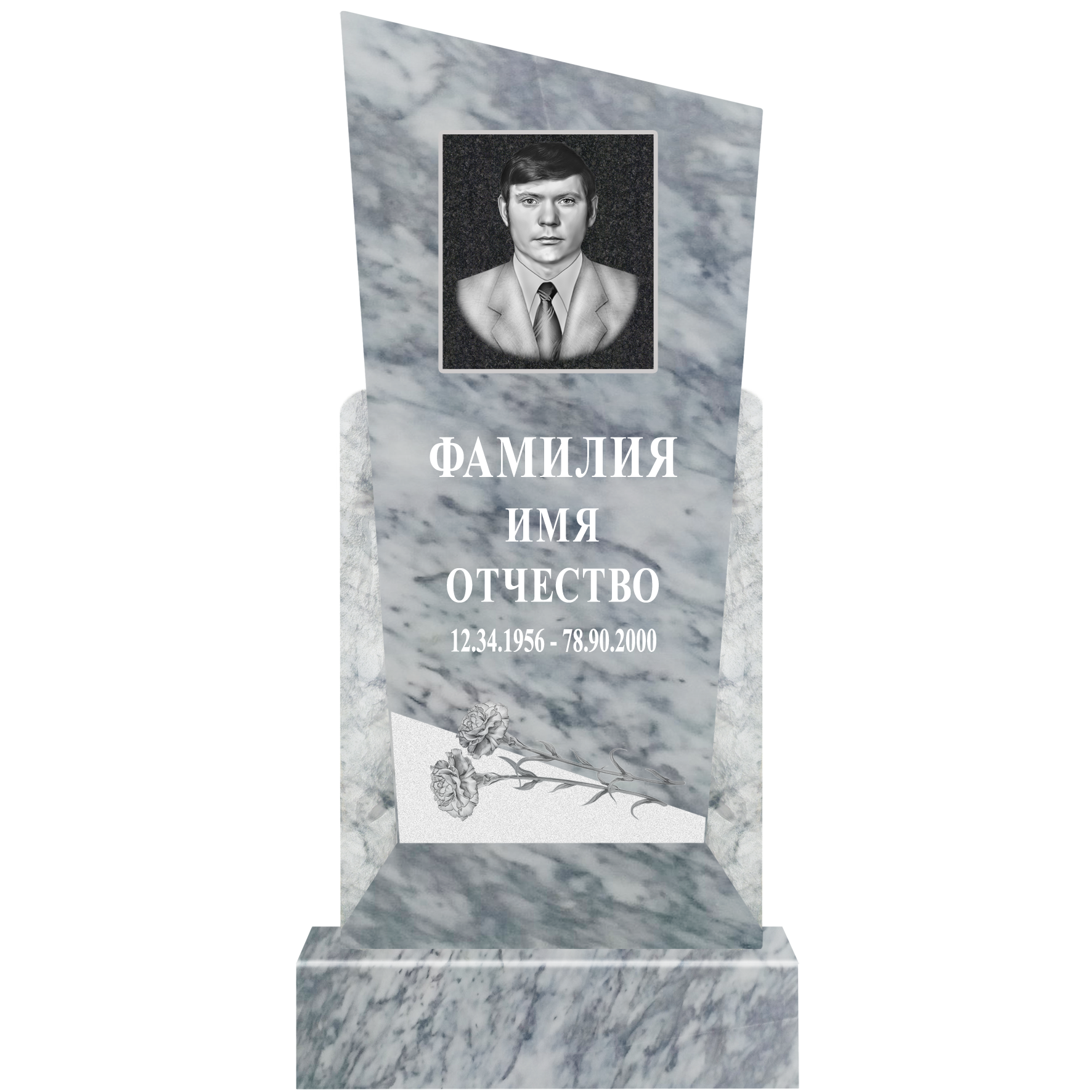 Данный комплект включает в себя памятник из мрамора с полным оформлением.
