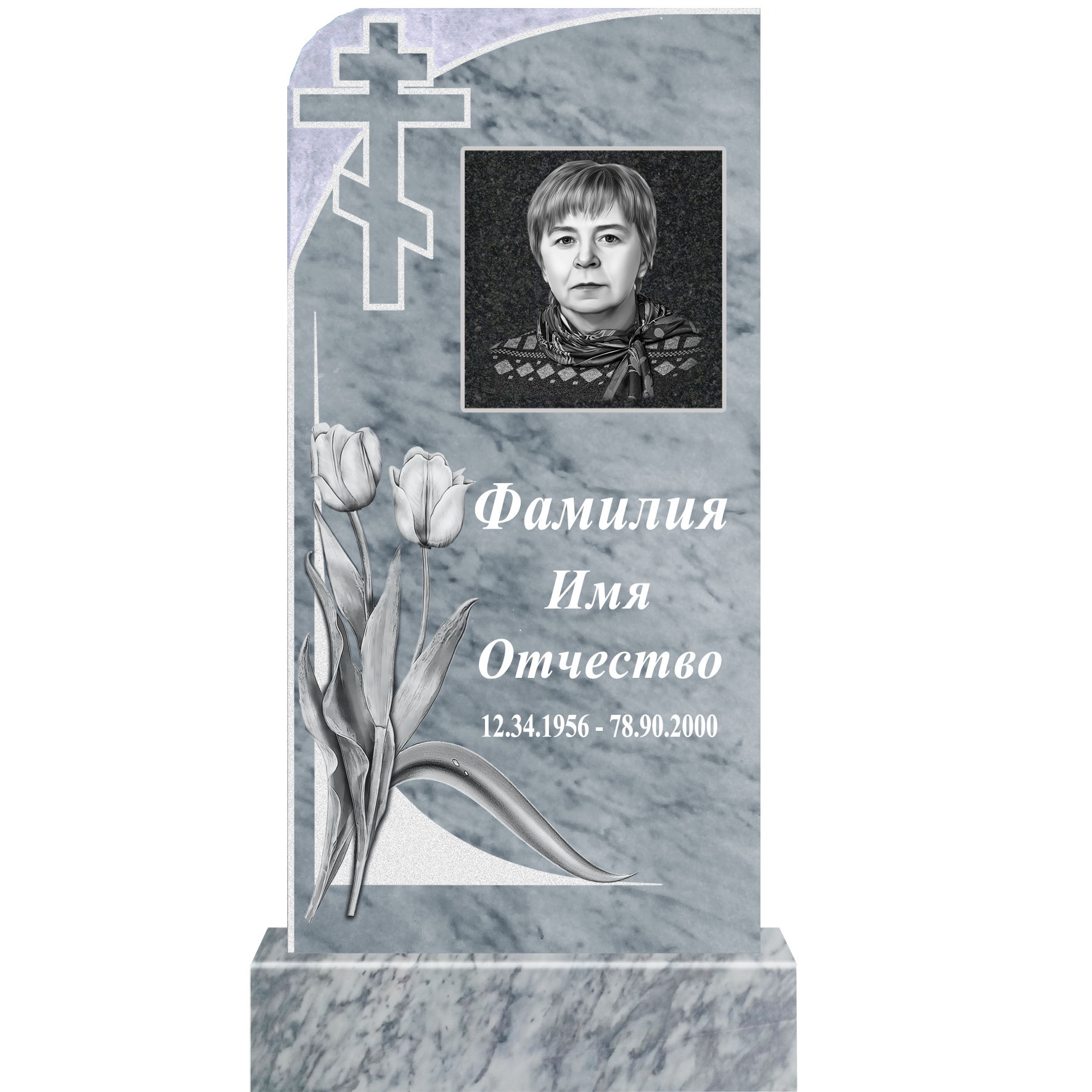 Данный комплект включает в себя памятник из мрамора с полным оформлением.